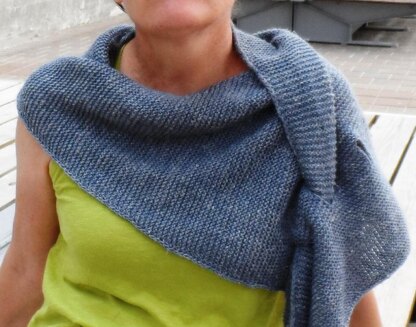 Pennant is a long, slender triangle with multiple keyholes that can be worn in several ways. Drape it around your shoulders as a light wrap or go twice around your neck for a cozy scarf. It is completely reversible.