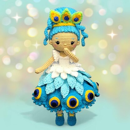 The crochet peacock doll pattern includes 36 pages with easy to follow step by step instructions and 230+ photos of process.