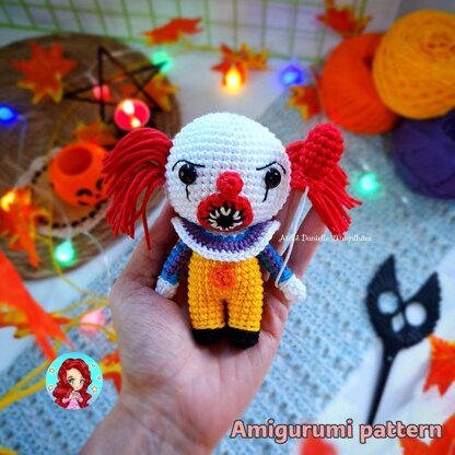 This is a digital file to make the chibi Pennywise amigurumi doll. Using the materials recommended in the pattern, the doll is approximately 12 cm (4,72") tall.