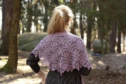 Smaller pale pink shawl used 1 skein Lioness Arts BFL Sock in Matildas Happy Ending [100% Wool, 437yd/400m per 100g] on 3.75 mm (US 5) needles. Blocked size: 102 x 43 cm (40 x 17 inches). Gauge: 18 stitches = 10 cm in pattern.