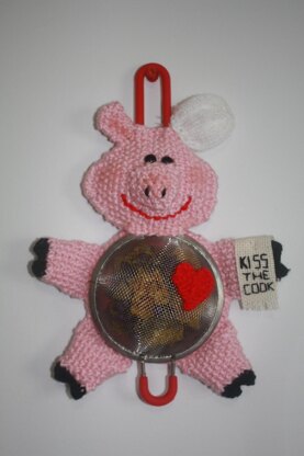 Percilla the Pig and Benni the Bear are two :"Kitchen Karacters" I have have created to add a bit of charm to our kitchen walls. Percilla is the "Kiss the Cook" pig and has a soup strainer for her tummy. It is filled with potpourri to add a sweet aroma to the room. She is knit in short rows and is definitely not a difficult knit. The accessories that adorn her are also included in the pdf. Her chef's hat and the heart on her chest, as well as the wee kitchen towel that she carries all are in the detailed instructions. If you can do basic knitting as well as pdf increases and short rows, and have a bit of a crafting hand- this pattern will only take you a few hours. Make Percilla ( and her mate Benni) as a unique gift for your best friend for the upcoming season. She will be smiling all year as she works in her kitchen!