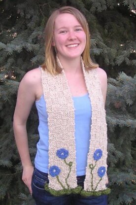 A beautiful variation of basketweave stitch with ruffle edging decorated with simply crochet applique periwinkle flowers and beads. A great beginner project that looks advanced.