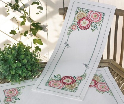 Permin Hollyhocks Table Runner Cross Stitch Kit