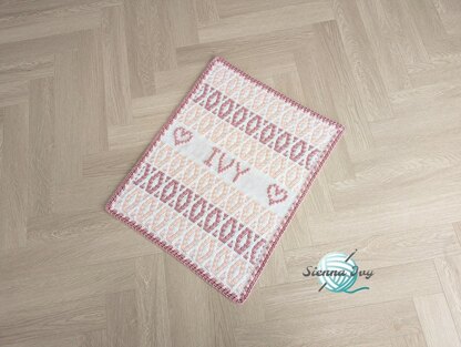 This is a personalised baby blanket crochet pattern which uses the inset mosaic technique for the majority of the pattern and bobbles to create the personalised section. The pattern includes the bobble charts for all letters of the alphabet as well as the heart shape (if you choose to add it) with simple, easy to follow, yet detailed instructions so you can create any name you would like.