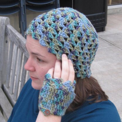 Materials Sport weight yarn 180 yds for hat 85 yds for gloves