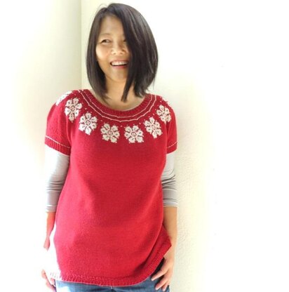 This is a seamless pullover worked from top down with colorwork motif around the yoke. Instructions of both short and long sleeves are included.