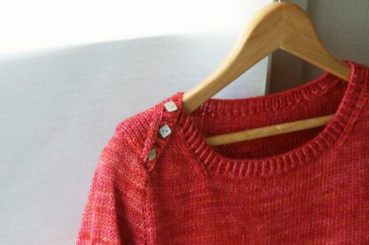 [Petit Large is knitted in the round, seamlessly from the bottom-up. Set-in sleeves are picked up directly on the armholes and shoulders are shaped with short rows. This timeless sweater is spiced up by an asymmetrical and buttoned envelope neckline and textured elbow giving it a sailor look!
