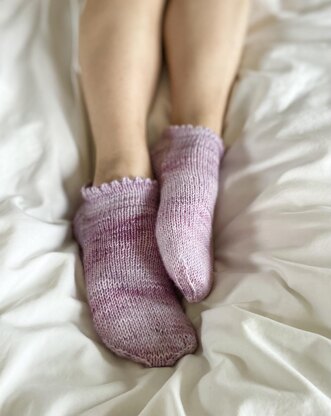 A basic vanilla anklet with a picot cuff makes a quick knit with a sweet result.