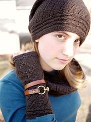 PATTERN INCLUDES INSTRUCTIONS FOR BOTH MITTS AND MATCHING SLOUCH HAT