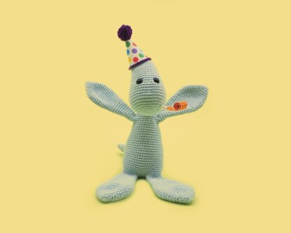 Peyton measures approximately 30 cm (12 in) tall when standing and 20 cm (8 in) when sitting if made with DK yarn and a 2.5mm crochet hook.