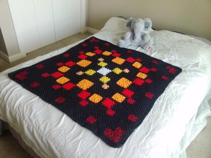 Finished size will be 23 times as big as a 2-round traditional granny square made in the same yarn.