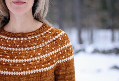 Picket Fences Sweater is worked from the bottom up in the round. First the body is worked straight to the underarms. Next, two sleeves are made, then knitted on to the body. Short rows are worked to start shaping the back of the yoke.