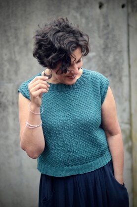 Knitted in fibres perfect for warm weather, Pickle, with her all-over texture, wide neckline and just a hint of sleeve caps, looks fantastic dressed up or down with flouncy summer skirts, high-waisted trousers, and shorts.