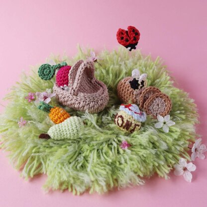 Pack up your picnic basket with yummy snacks for a lovely picnic! The Picnic Bundle is part of the Amigurumi Egg Hunt collection, this bundle includes a woven basket, loaf of bread and slices, pot of honey, a bee, a ladybug, a radish, a carrot and a pear. The bundle includes 1 bonus meadow setting and a PDF Stitch Guide.