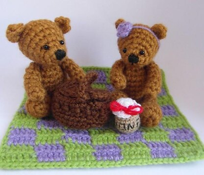 You’re invited to a picnic! Just look how well prepared the bears are – they have a blanket and a picnic basket, and even some yummy honey! So, c’mon, grab your hook and join the fun.