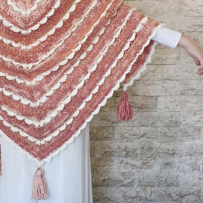 When I started this wrap I had no idea that it would turn into something wonderful. As I was working, I could only imagine a mermaid's reflective skin embodied in my stitches and yarn. That's why I decided to name this pattern the " Piel De Sirena" which translate "Mermaid skin".