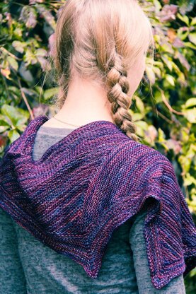 Piewhacket is a one-skein garter shawl constructed from three sequential short row triangles which build on each other, with a final uneven edging knit from live stitches using additional short rows. The resulting asymmetrical shape drapes perfectly around the neck and shoulders, and is completely reversible for ultimate wearability. The short row shaping means never having to work a huge number of stitches, and also shows off the unique beauty of variegated or semi-solid yarn.