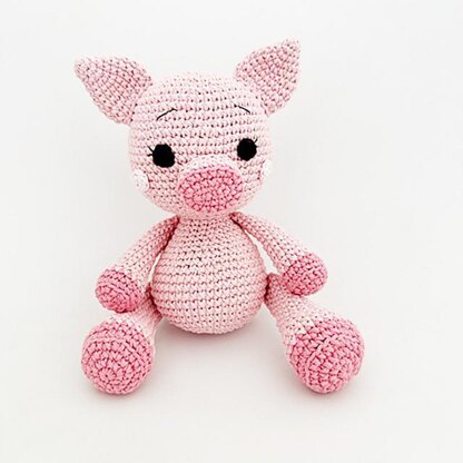 The pig measures approximately 17 cm in a seated position when using the materials mentioned above. If you are using yarn with a different gauge the toy’s measurements will change. Feel free to use any yarn you want, the toy itself won’t change, just the size. Make sure you sew tightly every part of the toy.