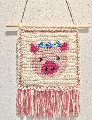 This adorable wall hanging is a quick and easy tapestry crochet pattern using the intarsia method. This pattern would also make a cute mini pillow, purse, washcloth, baby lovey, etc.