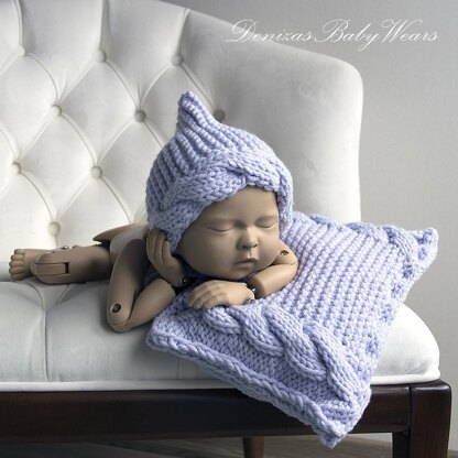 Cable Knit Posing Mini Pillow and Cable Newborn baby hat.