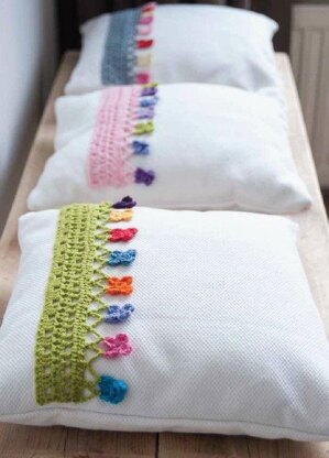 In this pattern you'll find instructions for the edging and the flowers. I'll explain how the flowers are attached to the edging. You can use any pillow size you like. How to determine the width of the edging is explained as well. The pattern is written in US crochet terms. I used Catania Cotton and a crochet hook size 2.5mm for this pattern. The pattern contains my email address just in case you need help during the making of this pattern. Please don't hesitate to contact me if you need help, I'm happy to help if necessary.