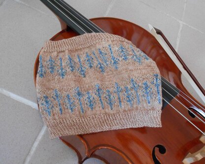 This cowl is worked in fingering (sock) yarn and features a stranded motif design of trees.