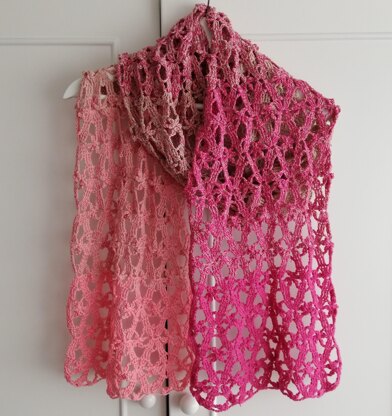 The 10 page PDF file includes: information about yarn, easy to follow written pattern (US terms) with a lot of photo’s (row-by-row description) & chart, and detailed explanation how to make this stunning summer wrap.