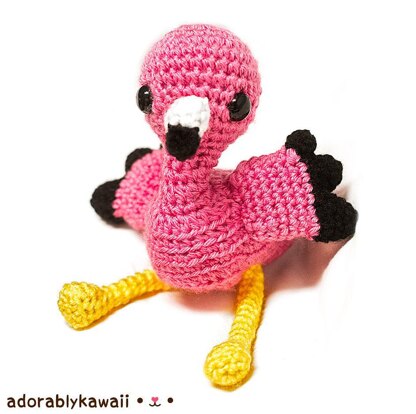 This flamingo is about 9" (23cm) tall. Results will vary depending on your tension and your yarn & hook choice.