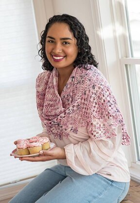Pink Icing is the perfect topping to any outfit. Working from side to side, this shawl can be adjusted in length quickly and easily just by adding or removing repeats on either side of the center. And what I think is truly the “icing” on the shawl is that you are working both the main body and edging at the same time. This means that you only have just a few ends to weave in when you are done. SCORE!