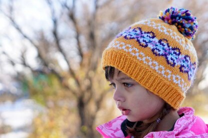 The Pippa Toque is a cute little hat to keep heads and ears toasty and warm on cold winter days. The close stitches and stranded colour work make this a nice thick fabric for great insulation.
