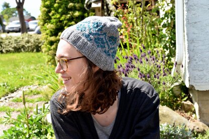 Inspired by a vintage Russian cross-stitch motif, the colorwork of the “Pique Tuque” evokes the domes of Russian Orthodox churches, ocean waves, and spring.
