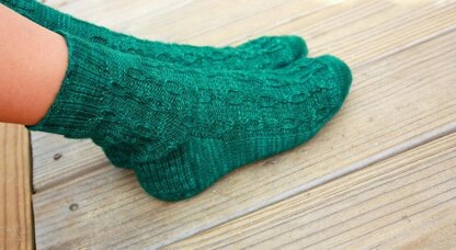 Sizes: 7½ (8, 8½, 9)” /19 (20.5, 21.5, 22.5) cm finished foot circumference; foot length and height customizable. It is recommended that socks be worn with 10% negative ease. Sample shown is 8” / 20.5 cm
