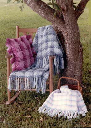 Plaid Afghan and Pillow. Comfort, country-style in a super simple classic. Instructions for this crocheted trio includes a 44" x 60" afghan, 12" square pillow and 36" x 42" baby afghan.