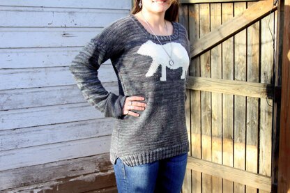 This sweater is knit in pieces from the bottom up. The polar bear motif is worked using the intarsia method.