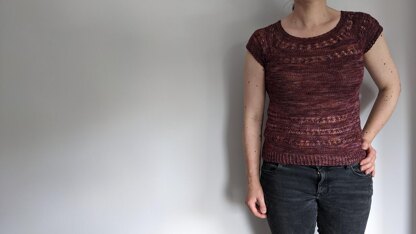 A beautiful tee or sweater – the perfect garment for transitioning between the seasons. A top down, seamless sweater with a stunning lace design. I started knitting the t-shirt version in the summer, and after a cold snap I was inspired to add longer sleeves. It looks great either way!