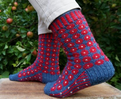 Ever since then, I have associated pomegranates with Autumn and it seemed like a good idea to create a thicker pair of socks for Autumn and Winter that featured pomegranate seeds.