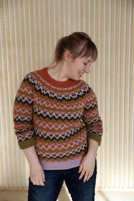This sweater is worked top-down seamlessly. The sweater has double folded neckline, cuffs and hem, a round yoke and an all-over colorwork pattern that lets you play with your favourite colours. You can use as many as you like or make a more subtle version with just three (you will need at least three to make the colorwork pattern work).