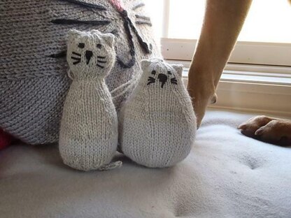 Two whimsical tiny cats, worked in fingering weight, are excellent decoration for your Christmas tree, or as a small gift for any cat lovers.