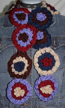 The Popcorn Medallion Scarf is made from colorful and soft round motifs that are joined as you work. Because of this, you can easily make the scarf as long or short as desired. Each motif is 4" across and the pattern makes a scarf that is 40" long.