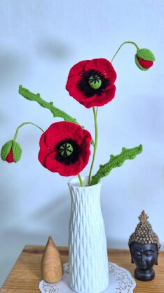 Crochet poppy pattern long stem remembrance Flanders oriental or Icelandic poppy common poppy flower papaver bouquet flower home Decor bridal bouquets The pattern includes step by step instruction with pictures for each crocheted part as well as for assembly of the flower. Very easy to follow pattern with over 50 pictures. There is one 24 page PDF with pictures for ease of understanding. The pattern uses size 2 acrylic yarn. You can use different colors for a completely different look.