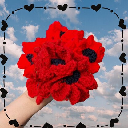 Striking poppy flower knitting pattern. Perfect for decorating your walls, doors and home.