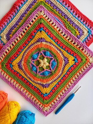 ♥ 'Popstar' 12" granny is part of a series of granny squares for blankets that can also be used in any number of projects that require crochet square patterns; the possibilities are endless!