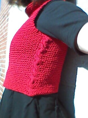 A short garter stitch top with side cables and turtleneck will make a perfect layering piece.