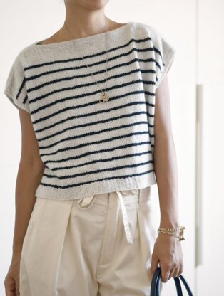 Porto Venere is inspired by the architecture of the church in the eponymous Italian city Porto Venere. The structure, the stripes and the marine theme all marry happily together. It is a beginner friendly loose fitting tee featuring a flattering bateau neck. It is worked from the top down. No short rows are used in the pattern. This pattern comes with a seamed and a seamless version.Porto Venere is graded with inclusive sizing in mind, designed to fit actual bust sizes from 76 cm / 30 inches to 168 cm / 66 inches. Measurements are given in both cm and inches.