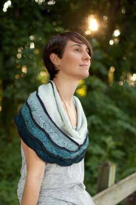 Layered “petals" in shaded color tones make an unusual, slightly 3-dimensional border for this narrow crescent shawl shaped by short rows. The shawl is knit bottom-up with sport-weight yarn, but different weights could also be used (note size and yardage would vary). Although the samples shown use five different colors, any combination of one to five colors may be used to create your own stunning Petals. This is also a great stash-buster project! A deeper shawl could be made by adding another leaf layer, if desired (adjust yardage accordingly).