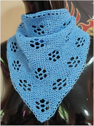 This scarflette is small and lightweight, and provides some warmth - although its main purpose is as a fashion statement, providing a bit a color at your neck, with the added interest of the primitive flower lace patterning.