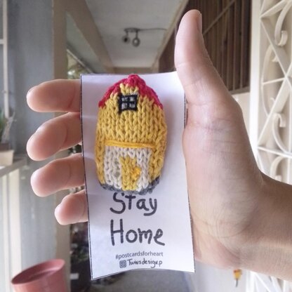 Postcard “Yellow House” :“Stay Home ” (Postcards for the Heart) (Pattern in Spanish and English) Hello, This pattern is a postcard with a message and amigurumi. It is perfect to give and do it yourself. The pattern includes the digital postcard to print and knit the house.