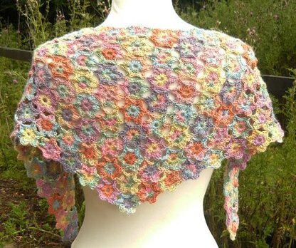 Posy is a scrap shawl and best made with oddments from your stash in as many different colours as possible. However if you would like to buy yarn especially for Posy, I recommend the following yarns Drops – Alpaca, Alpaca/Silk John Arbon Textiles – Alpaca Delight, Alpaca Supreme Knit picks – Alpaca Cloud Fingering