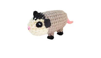 Posy Opossum is very fluffy, soft, and squishy. It is about 11.5" long from head to tail and about 4.75" tall. It is very fun to make for yourself or any child you know!