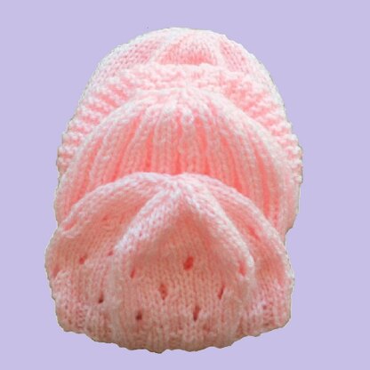 This hand knit PATTERN is for a set of baby hats for premature babies.